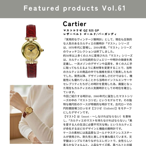 【シシィ・ジャポン マガジン Vol.125】今週の注目商品。カルティエ レディース腕時計 マストコリゼ QZ 925 GP