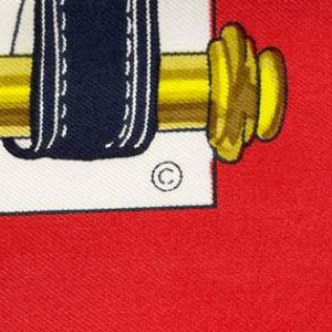 ©(コピーライト)とは著作物(文章、画像、音楽など)の作者が持つ「著作権」を明示する表記のことなのですが、スカーフに表記されている©表記は年代を推測するヒントにはなります。ただし、それだけで製造年を断定することはできません。